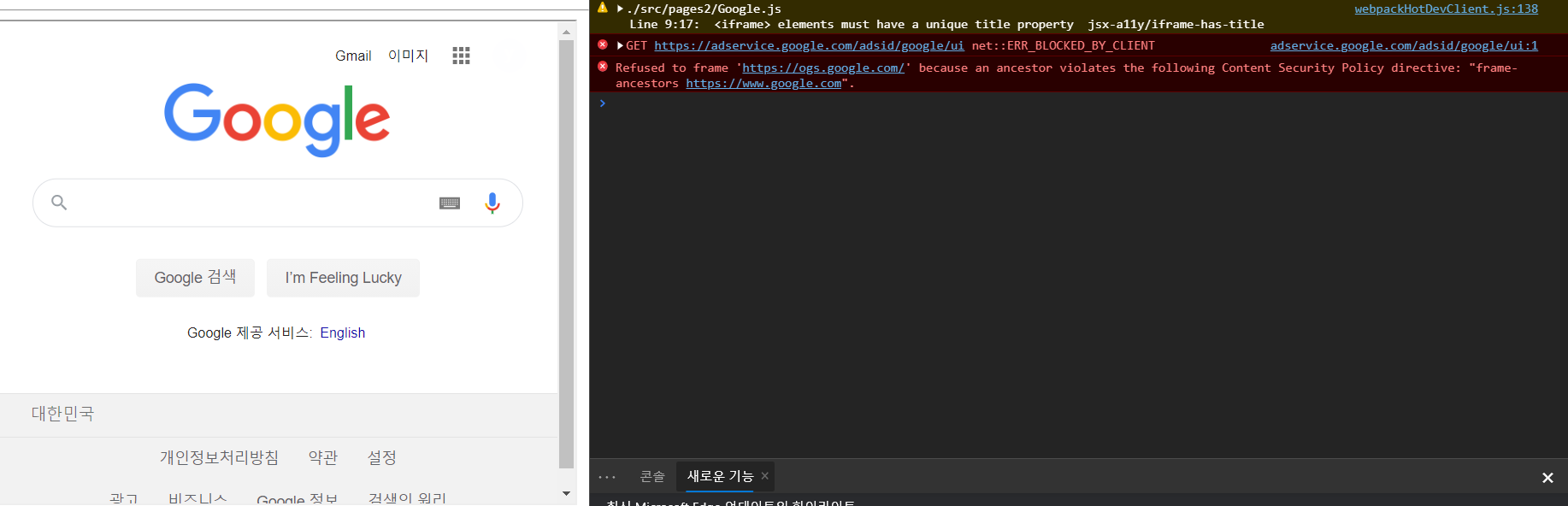 인스톨 후 구글을 iframe으로 참조해보면 짜잔