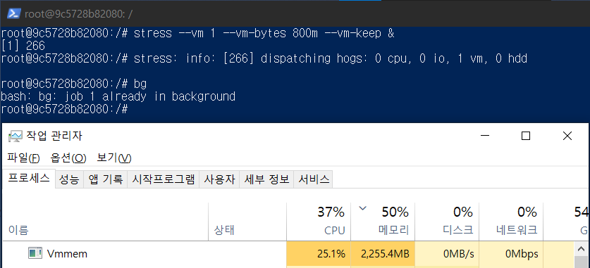 | 둘 다 기동하지 않음 | 0 (vmmem 종료) |