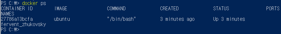 STATUS의 Up 8 seconds를 보면 알 수 있지만, 현재 가동중인 컨테이너만 출력해준다.