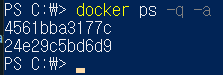 가동중, 멈춘 컨테이너를 모두 다 표현해주는 명령어이다