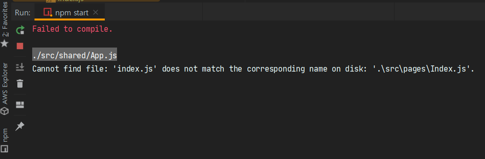 문제는 Index.js 였다. 그렇다! 대문자가 문제였던 것이다..
